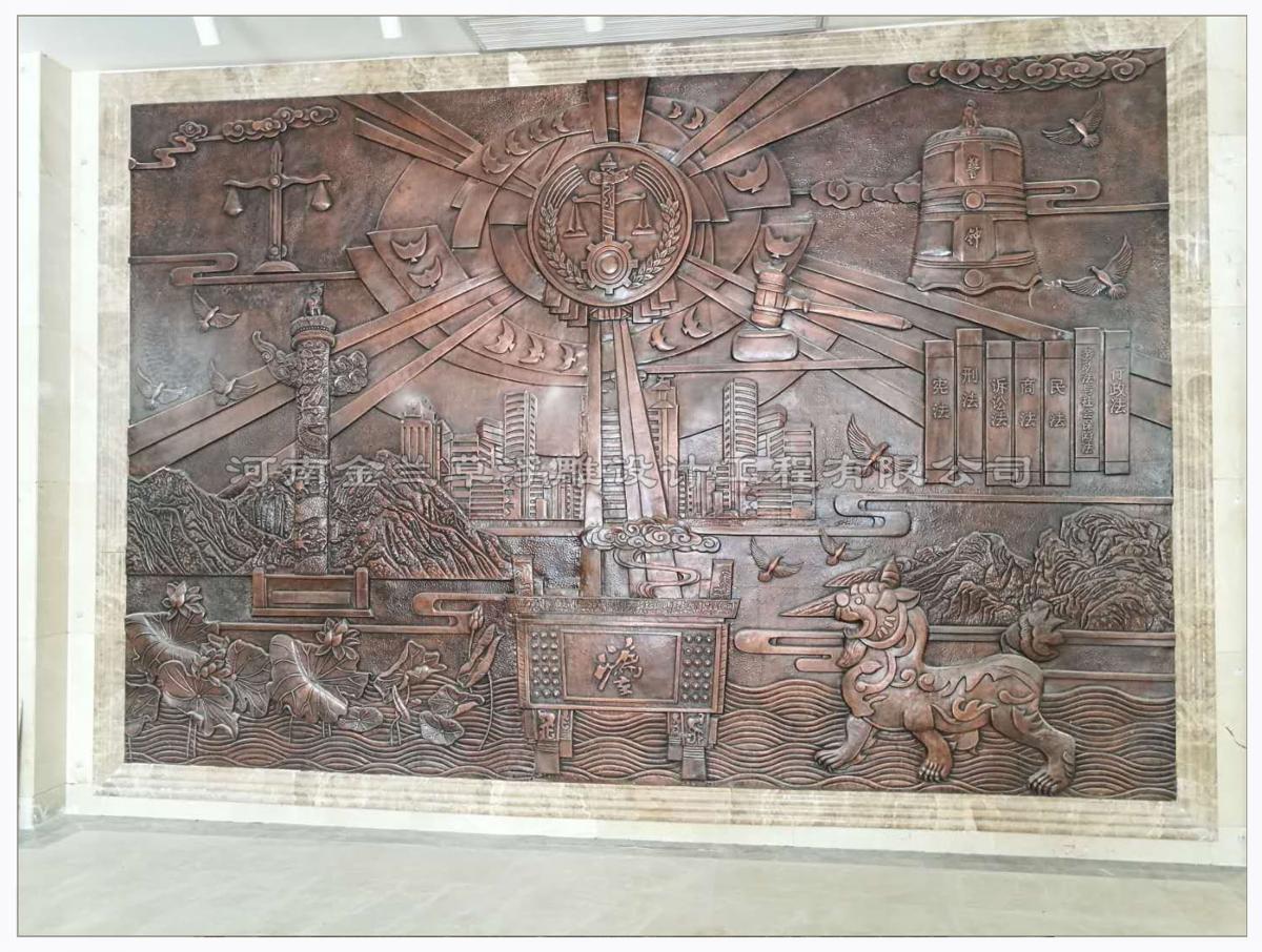 法院玄關浮雕因為裝飾需求,大堂浮雕墻在法院玄關浮雕的裝飾中運用較多,浮雕質(zhì)感古樸典雅,大方美觀,體現(xiàn)